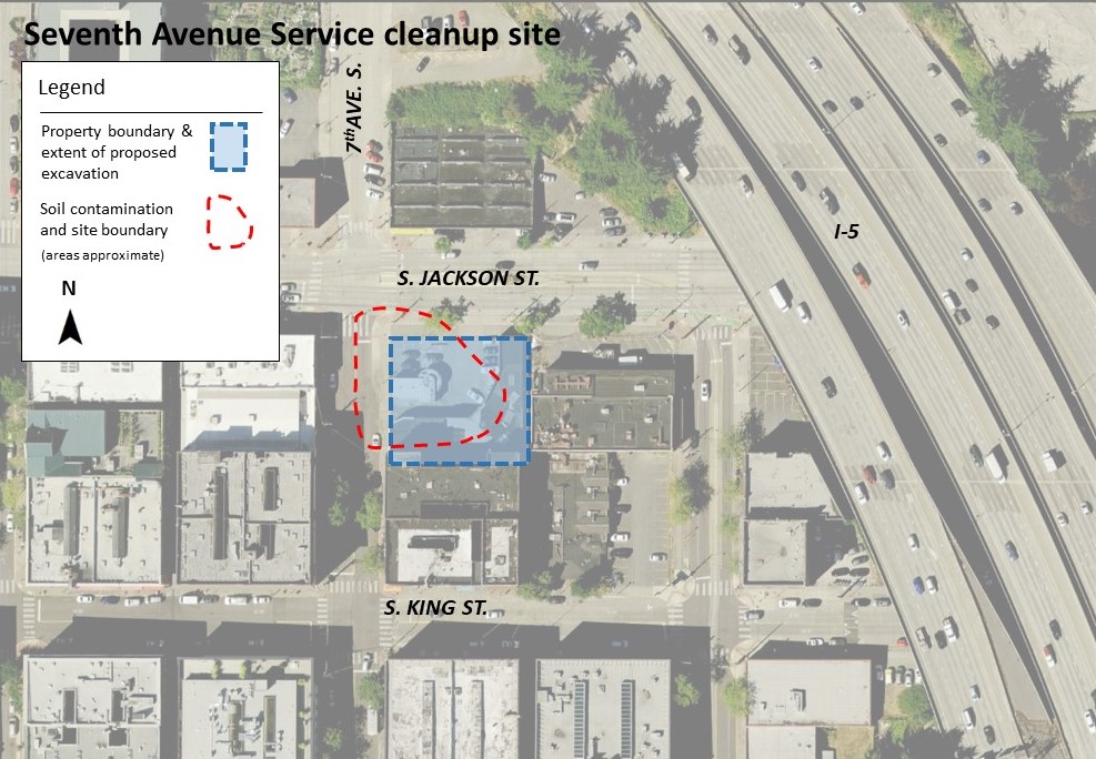 The contamination at the site exists in the soil underneath the property boundaries, and also extends into the soil under a portion of the right-of-way at 7th Avenue South and South Jackson Street.
