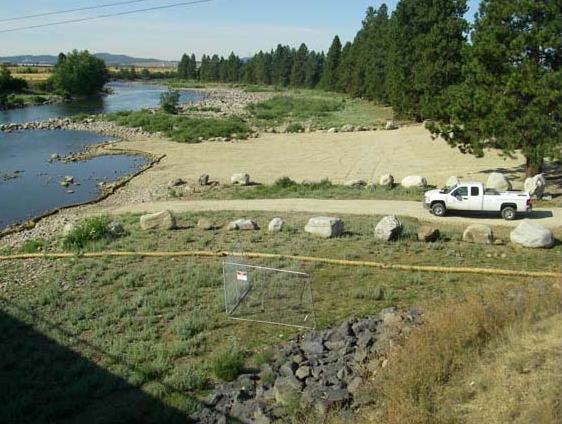 The Harvard Road site covers less than 1 acre and lies along the northern bank of the Spokane River. It is almost 3 miles west of the Idaho state line and immediately west of the Harvard Road Bridge.