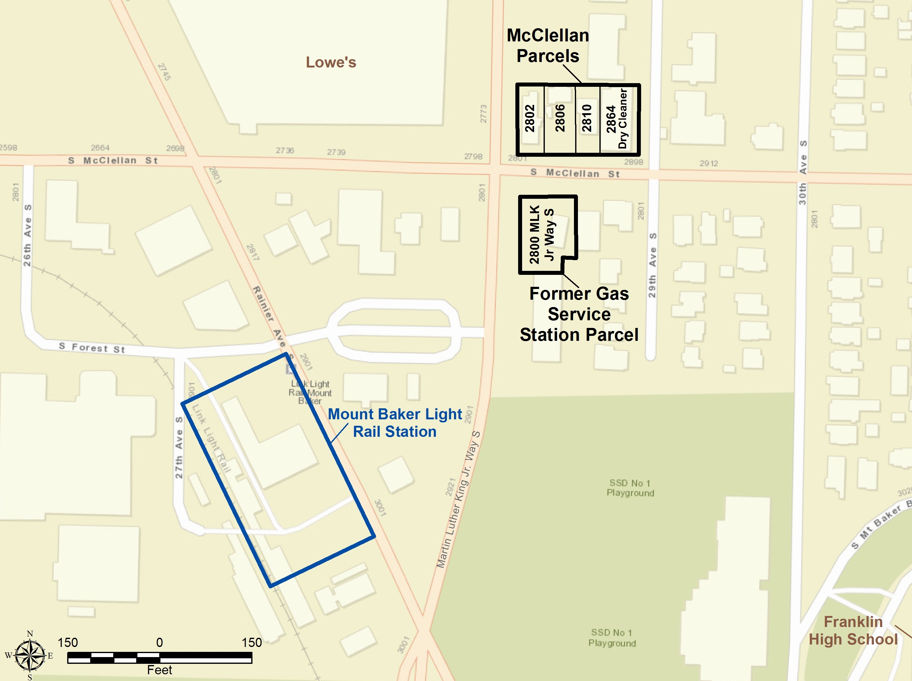 The other four properties purchased by MBHA, including the Mt. Baker Cleaners property, are collectively referred to as the “McClellan Parcels”. Mt. Baker Cleaners has been operating at 2864 S McClellan Street since the early 1950s. It is the source of dry cleaning related contamination beneath the McClellan Parcels and other surrounding properties and rights of way. Chlorinated and non-chlorinated VOCs have been detected. There have been no remedial actions associated with this property.