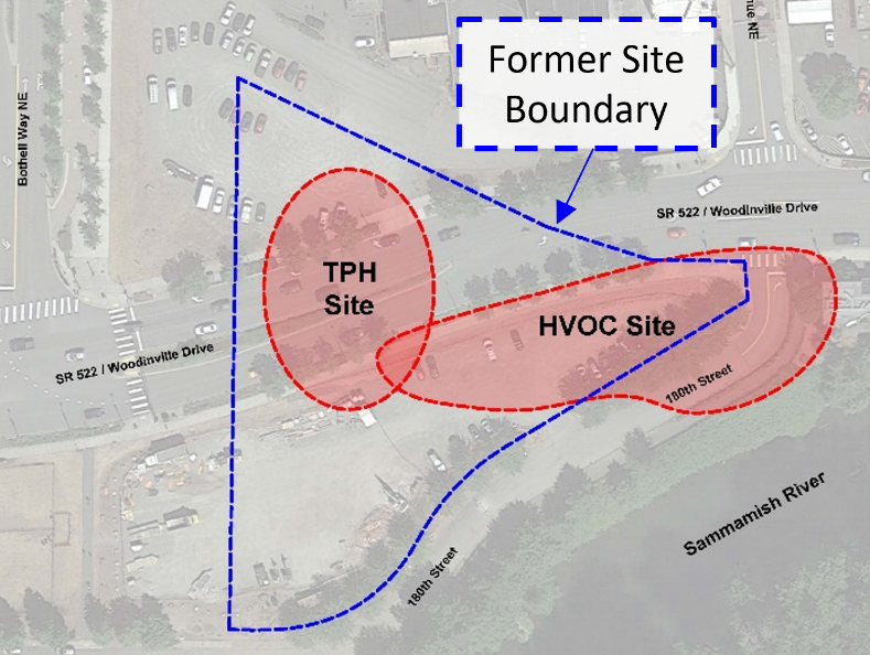 In 2008, the City acquired the larger triangle-shaped property (see Figure 1) as part of the Highway 522-Woodinville Drive realignment and downtown revitalization effort. This property was called the Riverside Cleanup Site. The City entered into an Agreed Order (AO) with Ecology to investigate contamination on the site and found that there were two separate areas of contamination.