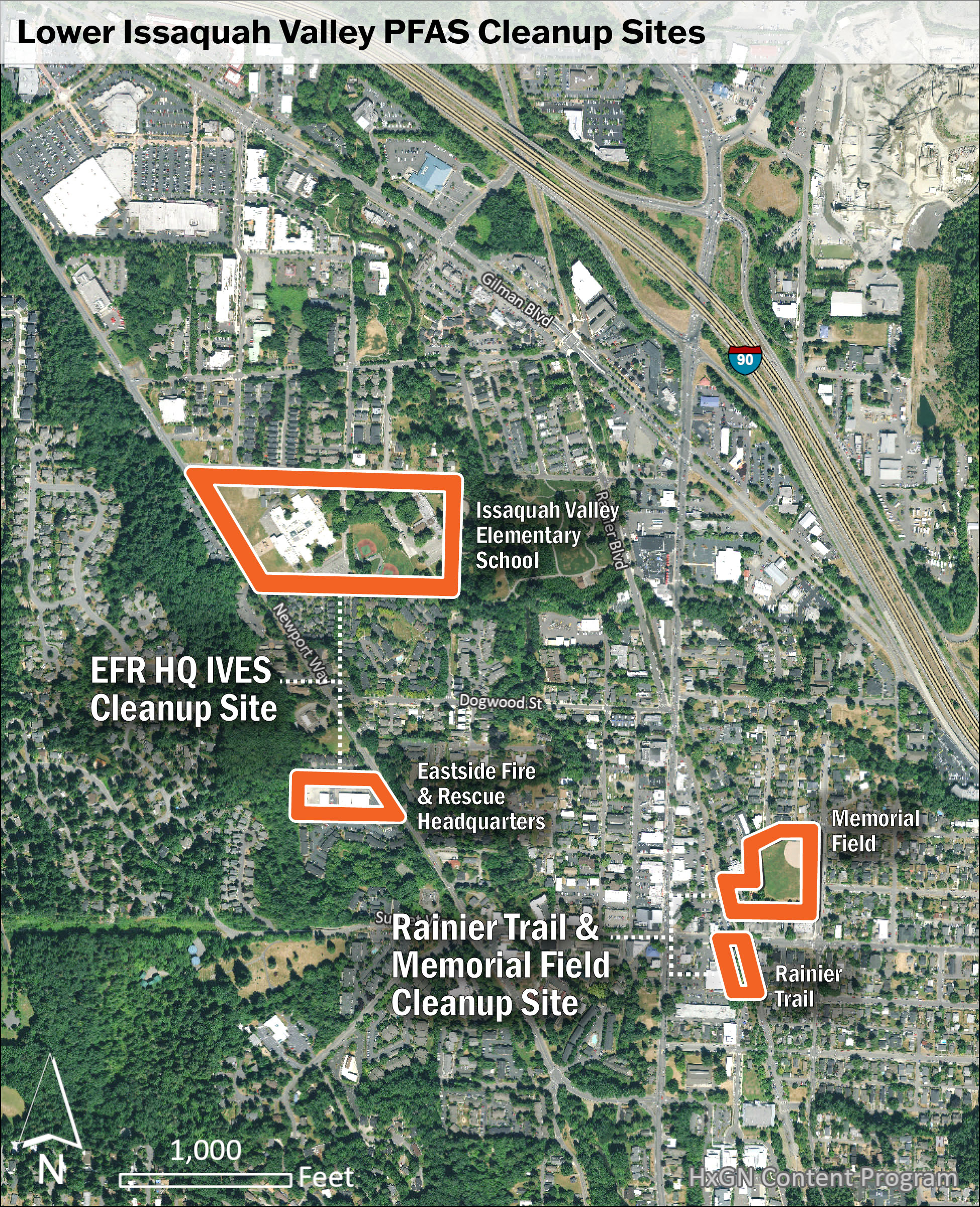 These sites were identified due to releases of per- and poly-fluoroalkyl substances (PFAS) to soil and groundwater. Investigations determined the likely source of PFAS is firefighting foam formerly used at the sites during lawful training activities. The potentially liable persons (PLPs) for the releases include the City of Issaquah (City) and Eastside Fire & Rescue (EF&R).