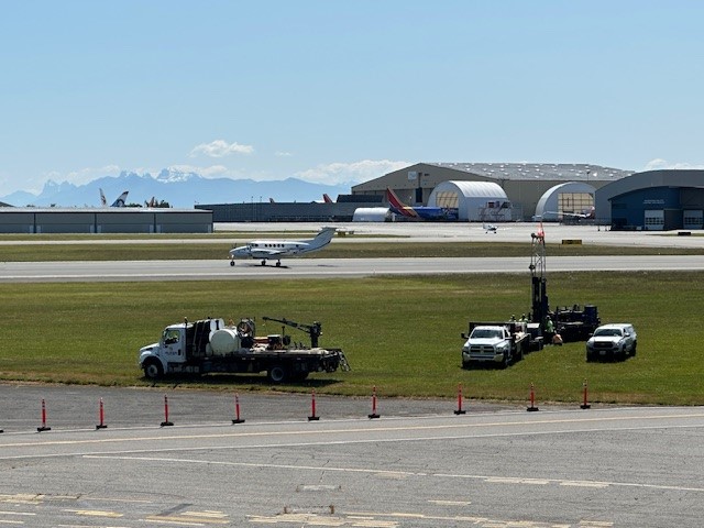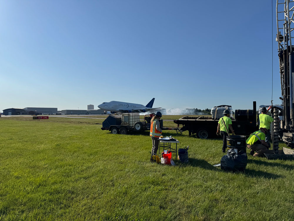 Past uses of the site included firefighting training exercises conducted by Paine Field and local fire departments, as well as equipment calibration and compliance testing required by the Federal Aviation Administration (FAA). Training exercises involved filling a pit in the ground with flammable materials like petroleum and igniting the materials. These fires were extinguished using fire suppressants, including aqueous film forming foam (AFFF), which contains PFAS. Fire truck calibration and FAA compliance testing were conducted by spraying AFFF mixtures directly onto the ground near the fire training pit. These practices were modified in 2019 so that AFFF was no longer discharged onto the ground.