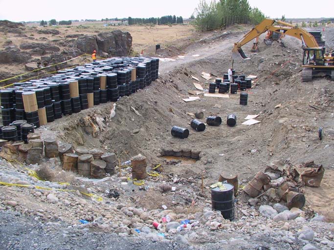All 2,353 drums of industrial waste were removed from the north end of the landfill. Contaminated soil and spilled drum contents that were hazardous waste were sent to a disposal facility. Photos of the drum removal are available on Ecology's Flickr account.