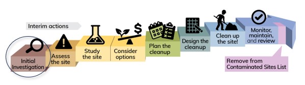 During the Initial Investigation, we evaluate environmental conditions at the property and review all available data. The goal of the Investigation is to determine if the release may pose a threat to human health or the environment, and if further cleanup actions are needed. We track any site that is suspected or confirmed to be contaminated with hazardous materials, as required by MTCA.