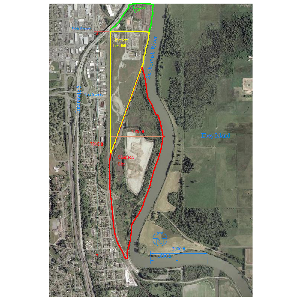 The Simpson site is located south of the landfill site. It is near the Lowell district and within the incorporated boundaries of Everett, Washington (Figure 1). The Sites borders are Junction Avenue and Second Avenue to the west, the Snohomish River to the east, the landfill site to the north, and Lowell Snohomish River Road to the south. Parts of the Simpson Site are being cleaned up under Ecology’s Voluntary Cleanup Program.