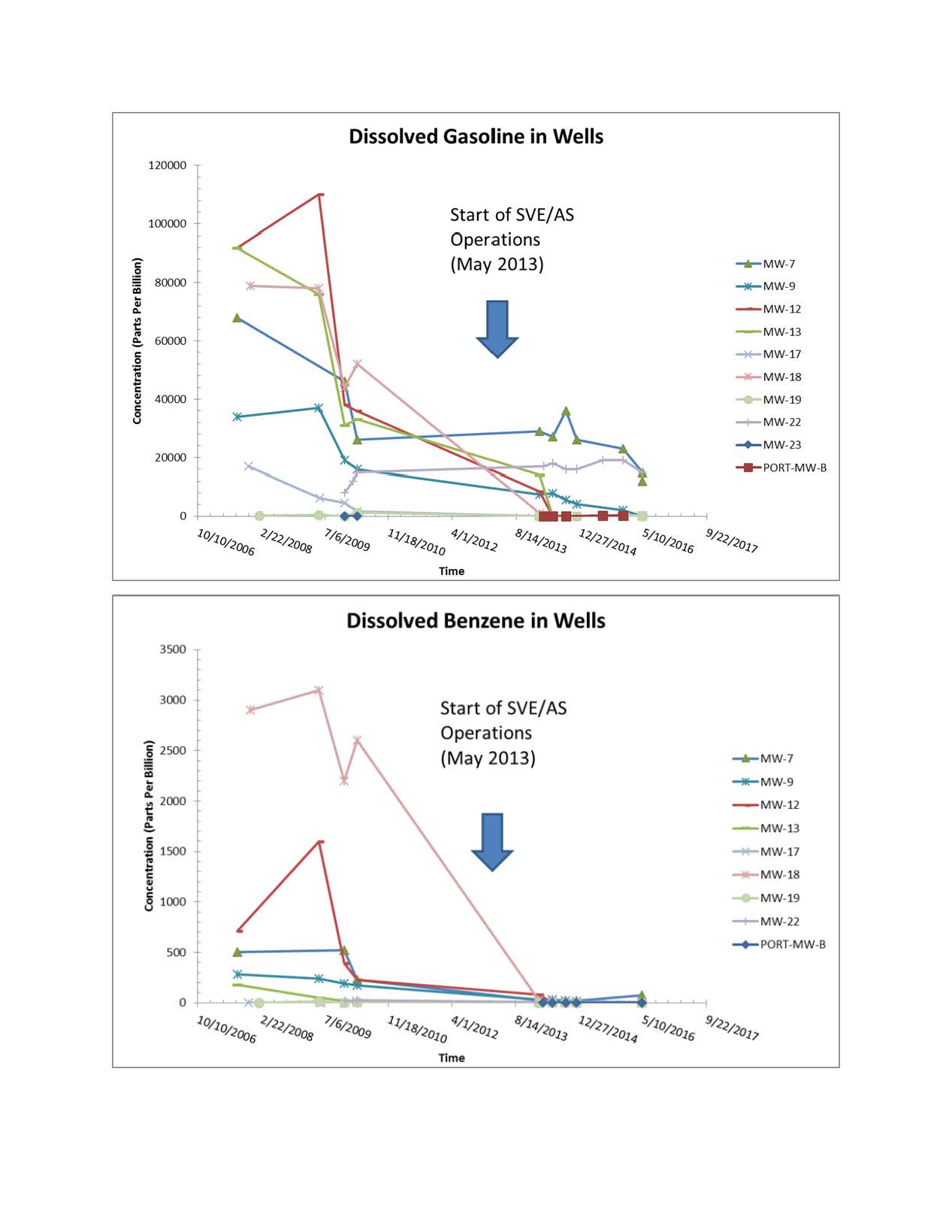 The results show that groundwater conditions have improved significantly following the operation of the In-Situ Air Sparging and Soil Vapor Extraction (IAS/SVE) System which started last May 2013.