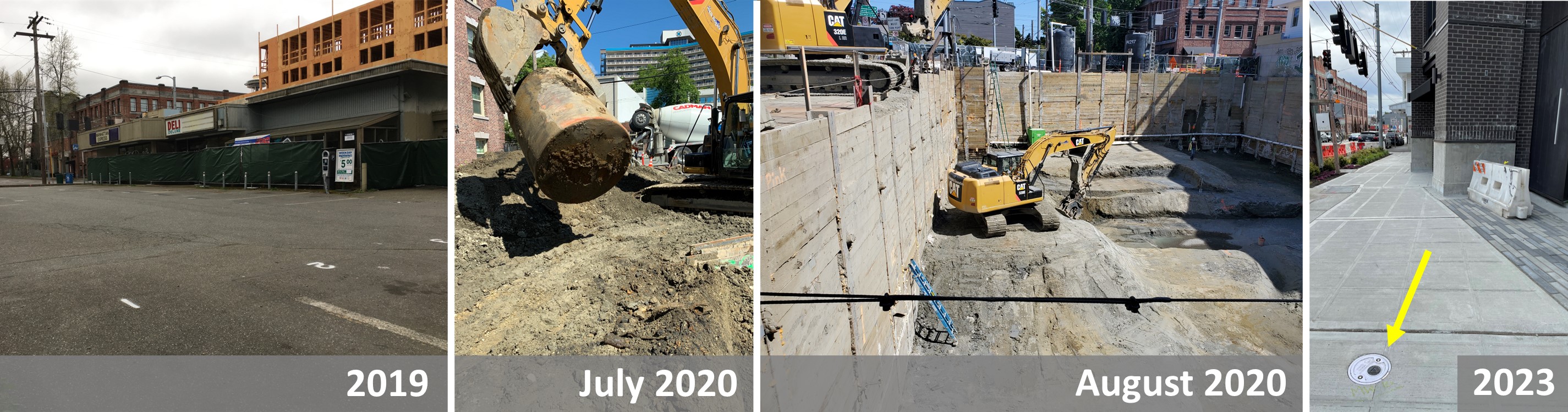 - March 27-April 5, 2023: The installation of seven monitoring wells in the Monterey and Del Roy Apartment properties, and City of Seattle right-of-way.
