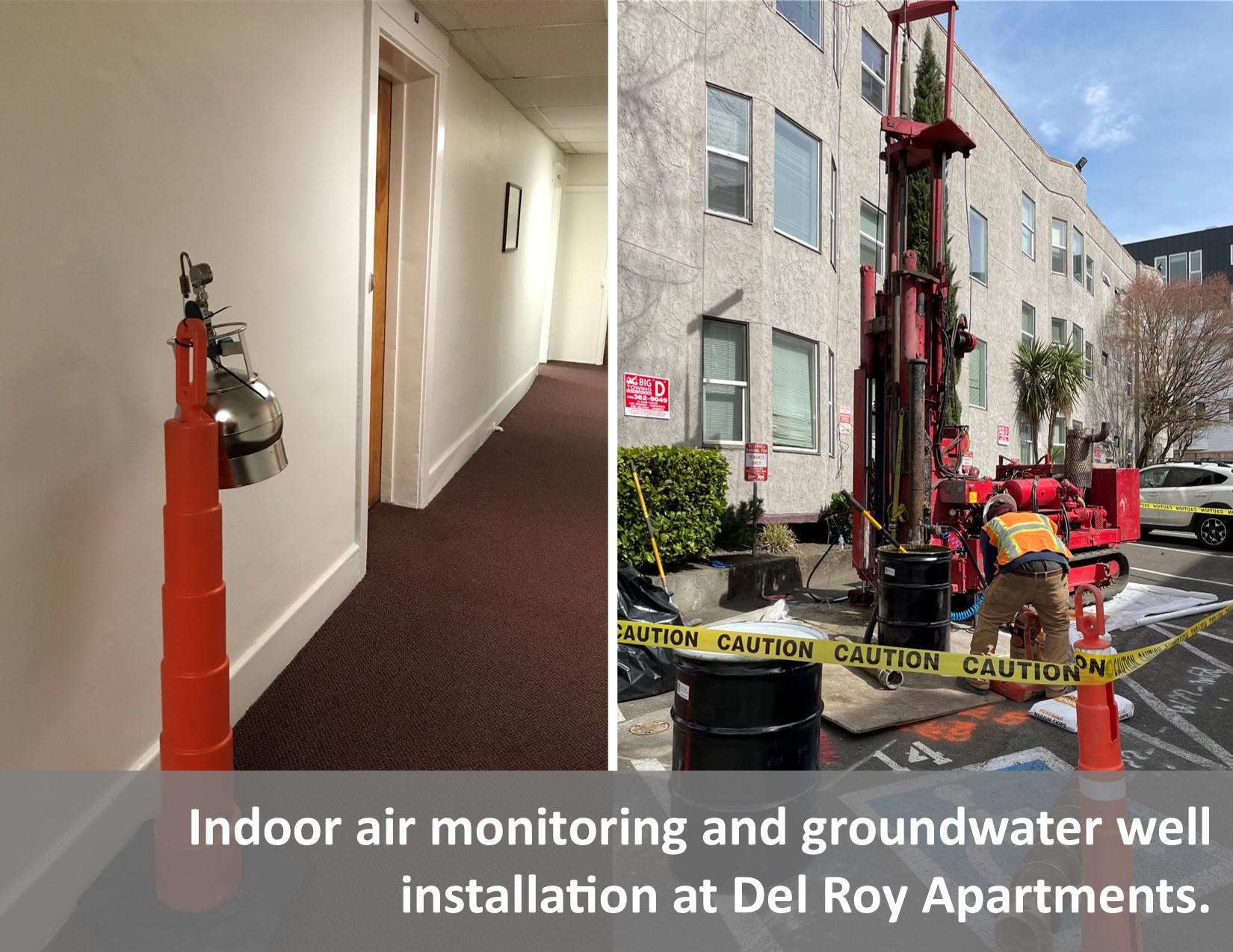 - April 2022: The collection of indoor air samples and sub-slab vapor samples in the basements of the Monterey and Del Roy Apartments.